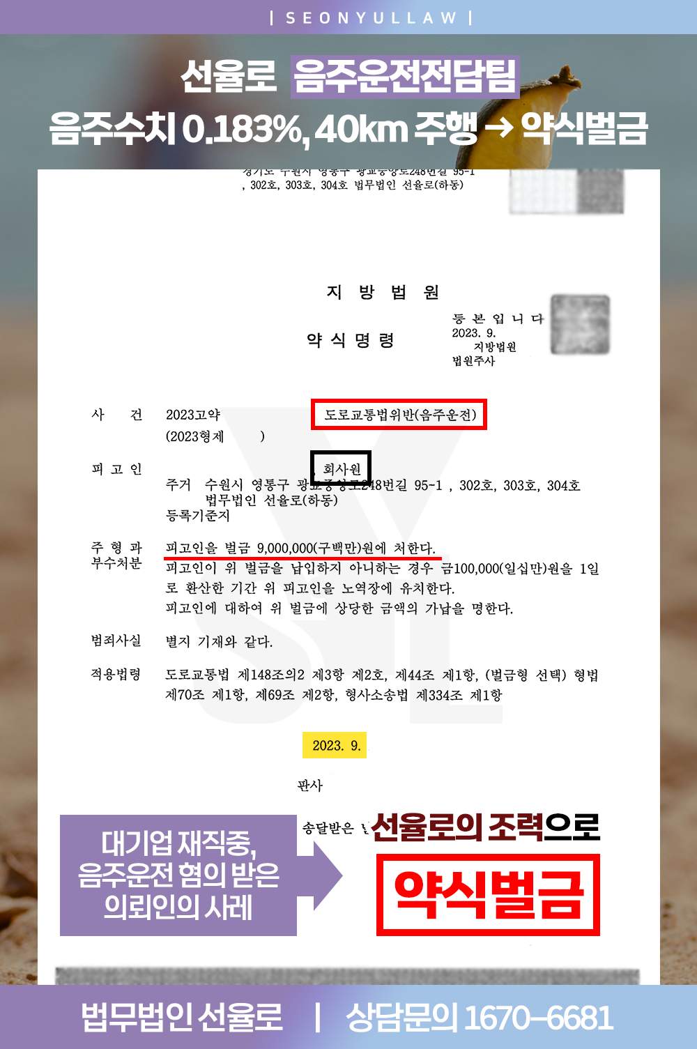 [음주] 대기업 재직 중 0.183%의 혈중알코올농도 수치로 음주운전 적발된 사례 (2023.09)