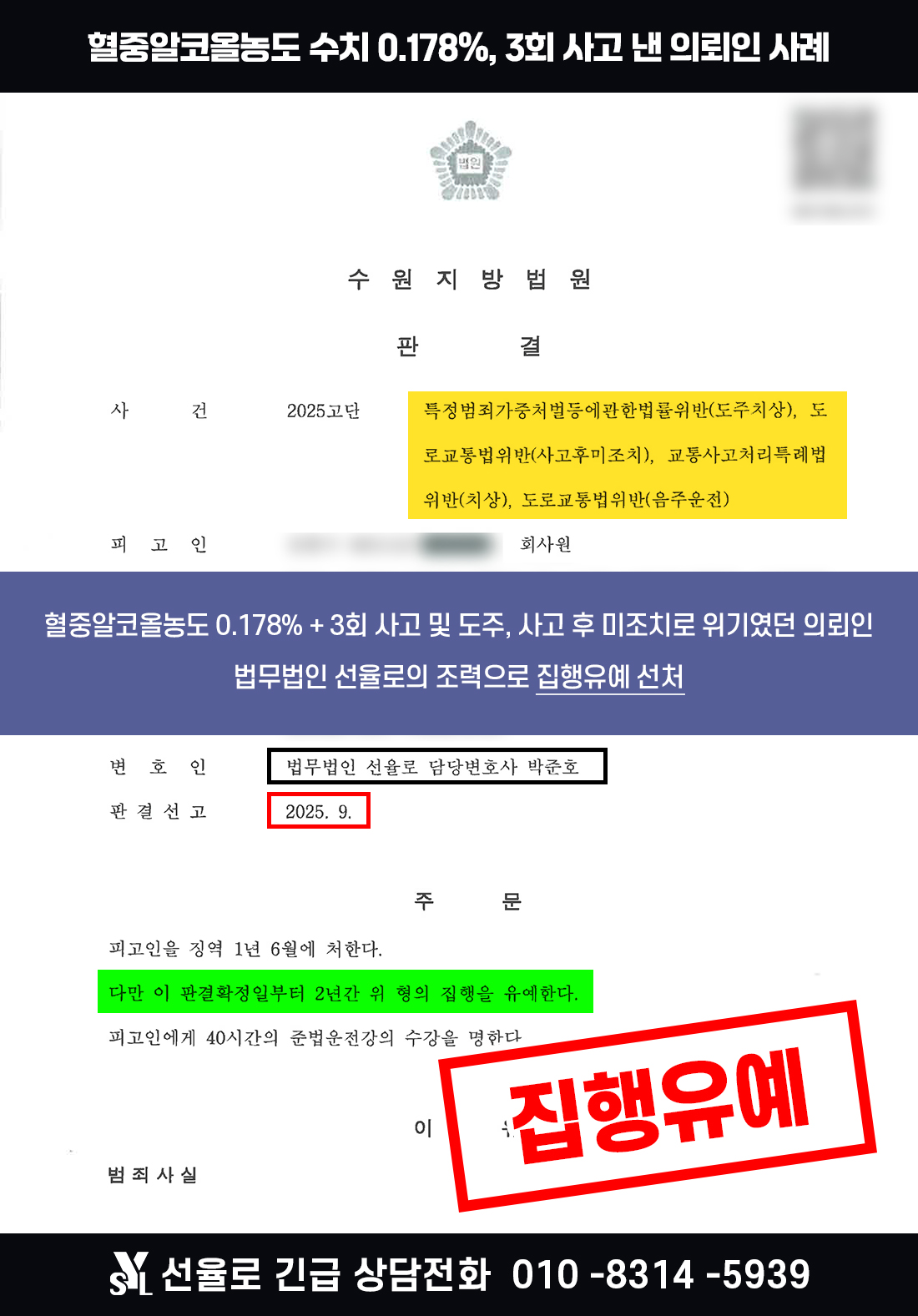 수원음주뺑소니변호사 | 음주운전 중 3회 사고 내었으나 도주, 사고 후 미조치한 사례 (2025.09)