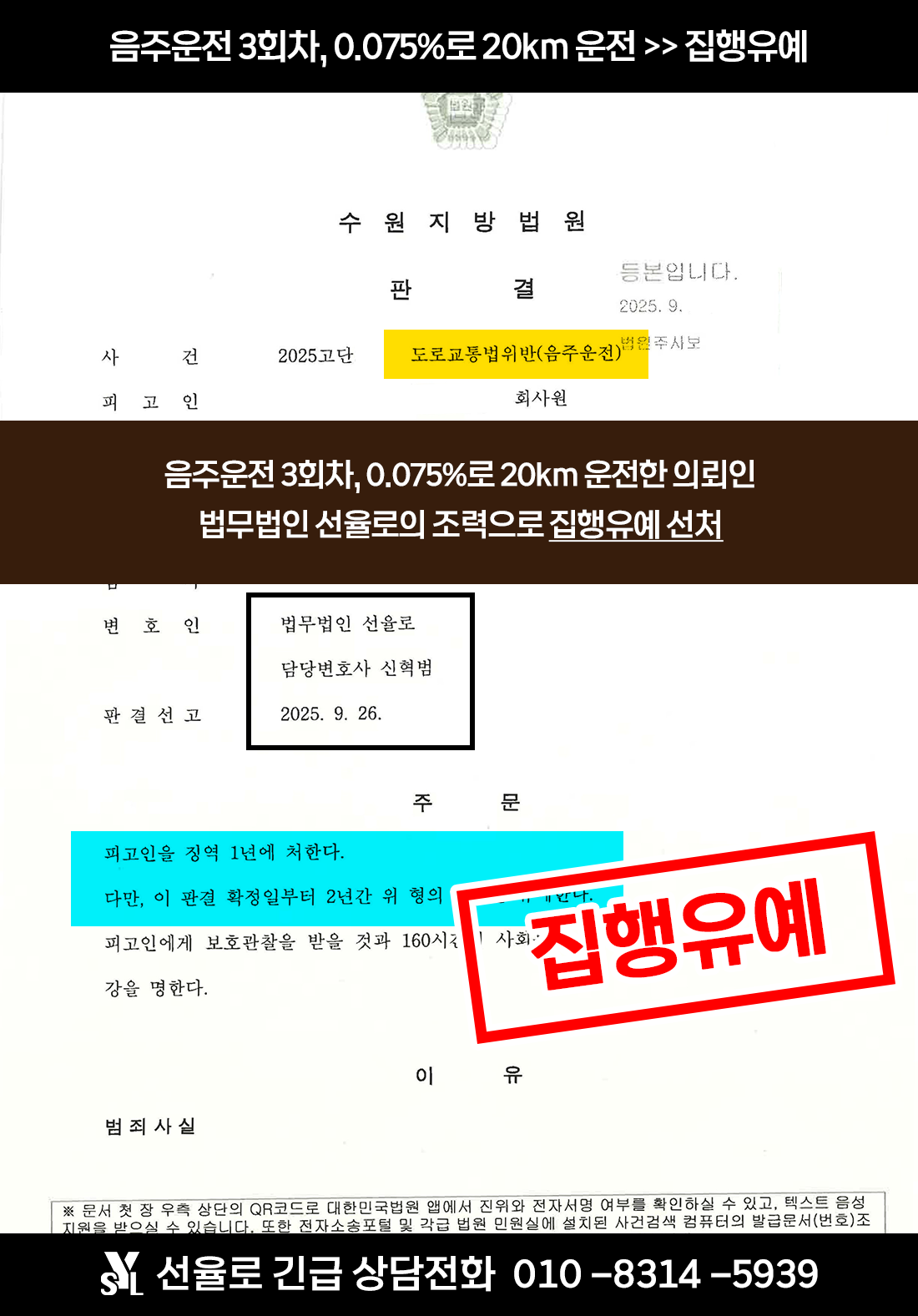 수원음주운전재범변호사 | 3회차 적발, 20km 운전 적발되었던 의뢰인 사례 (2025.09)