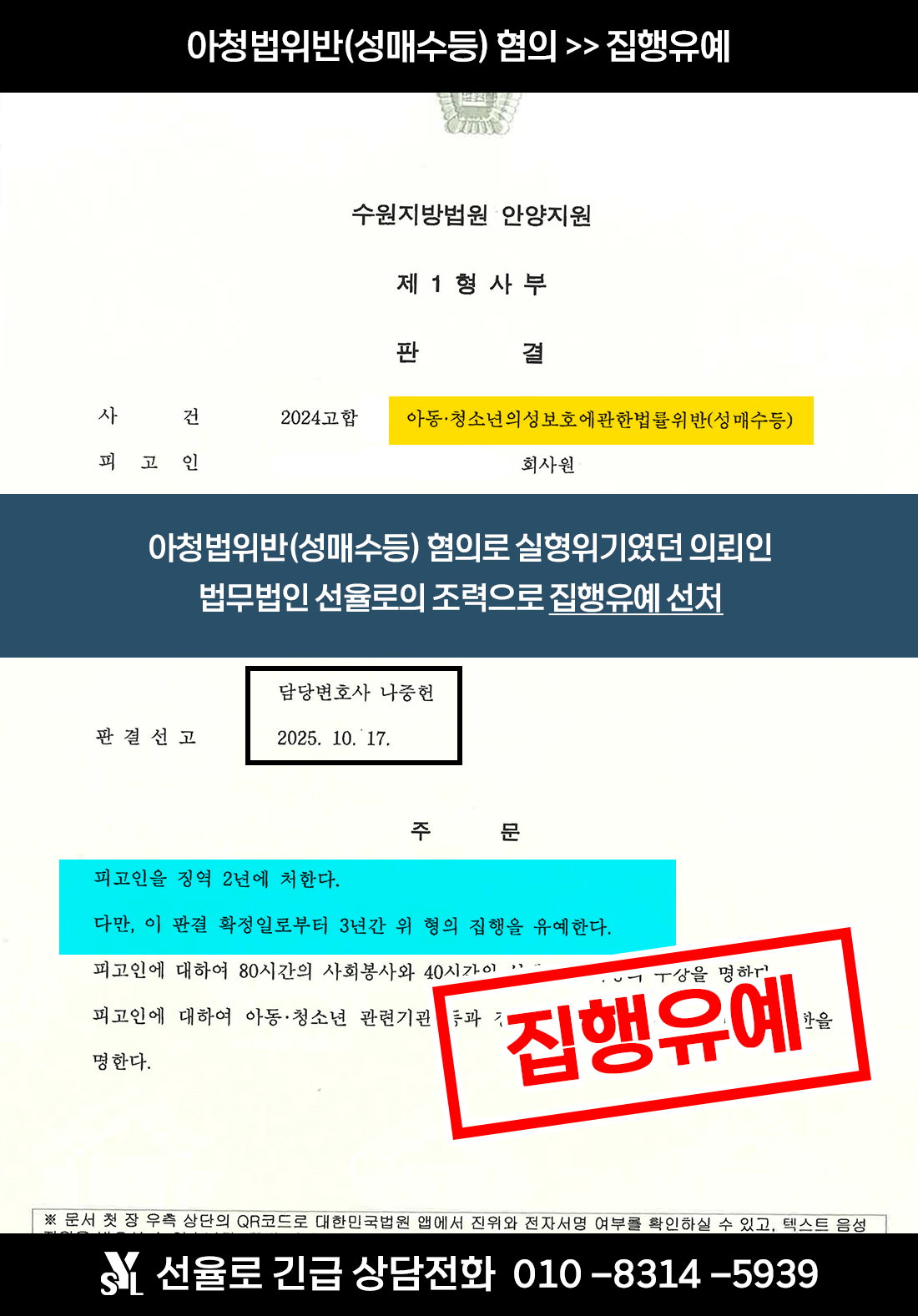 수원아청법변호사 | SNS에서 만난 13세 미만 피해자 대상 성매수등 혐의받게 된 사례 (2025.10)