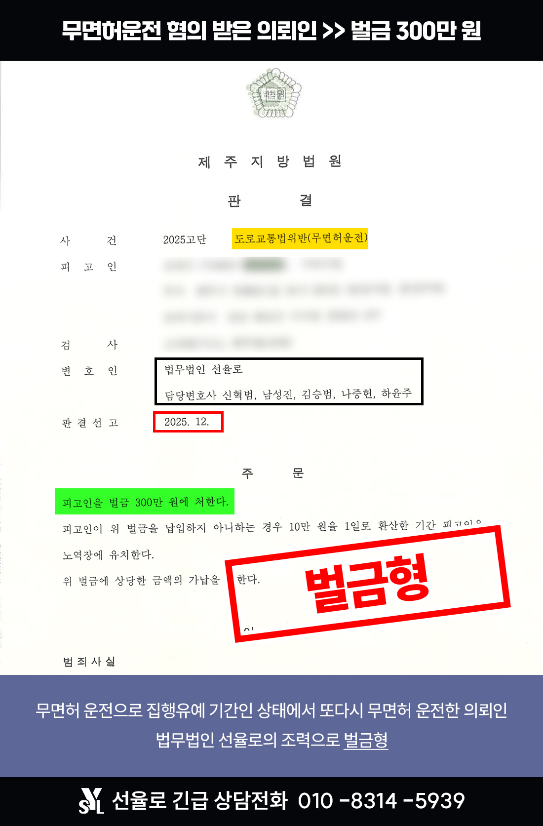 수원무면허운전변호사 | 무면허운전 집행유예 기간 중 또다시 무면허 운전한 의뢰인 사례 (2025.12)