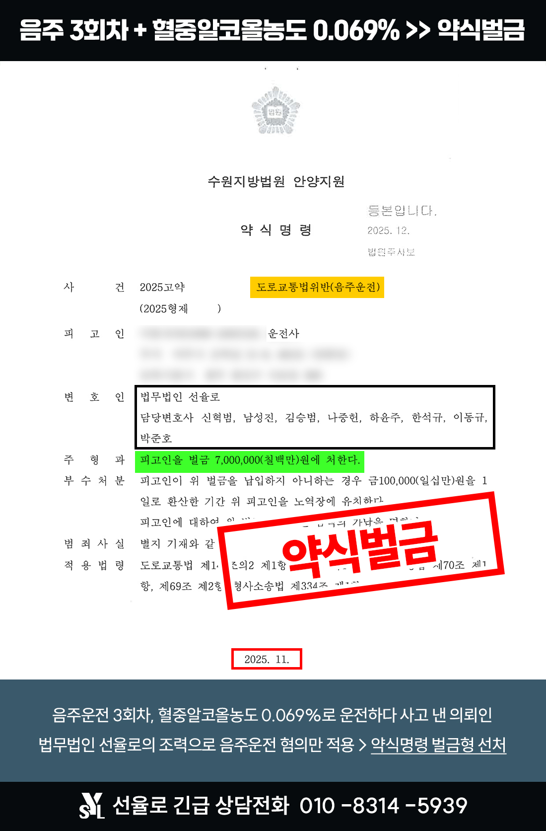 화성음주운전변호사 | 음주 3회차, 0.069% 수치로 운전하다 사고낸 의뢰인 사례 (2025.11)