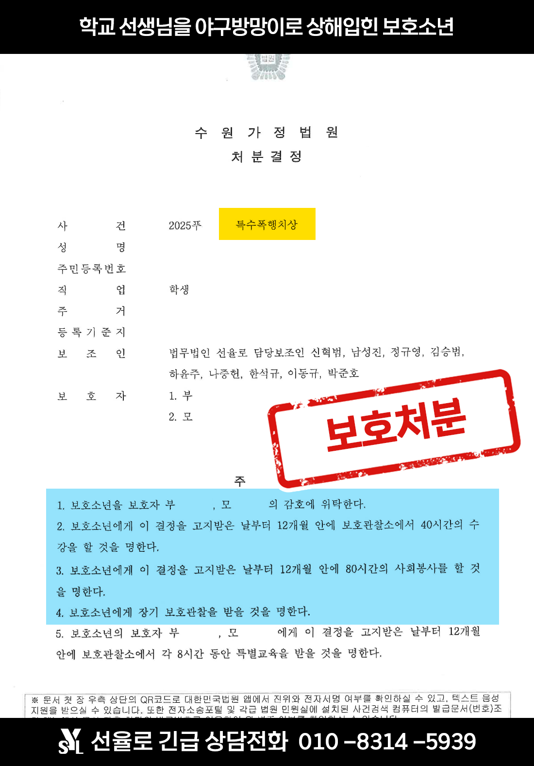 수원소년보호사건변호사 | 학교 선생님 상대로 야구 방망이 휘두른 중학생 사례 (2025.11)