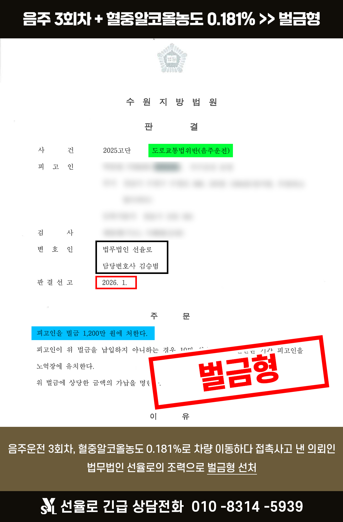 용인음주운전전문변호사 | 음주 3회차, 0.181% 수치로 차량 이동하다 접촉사고 낸 의뢰인 사례 (2026.01)
