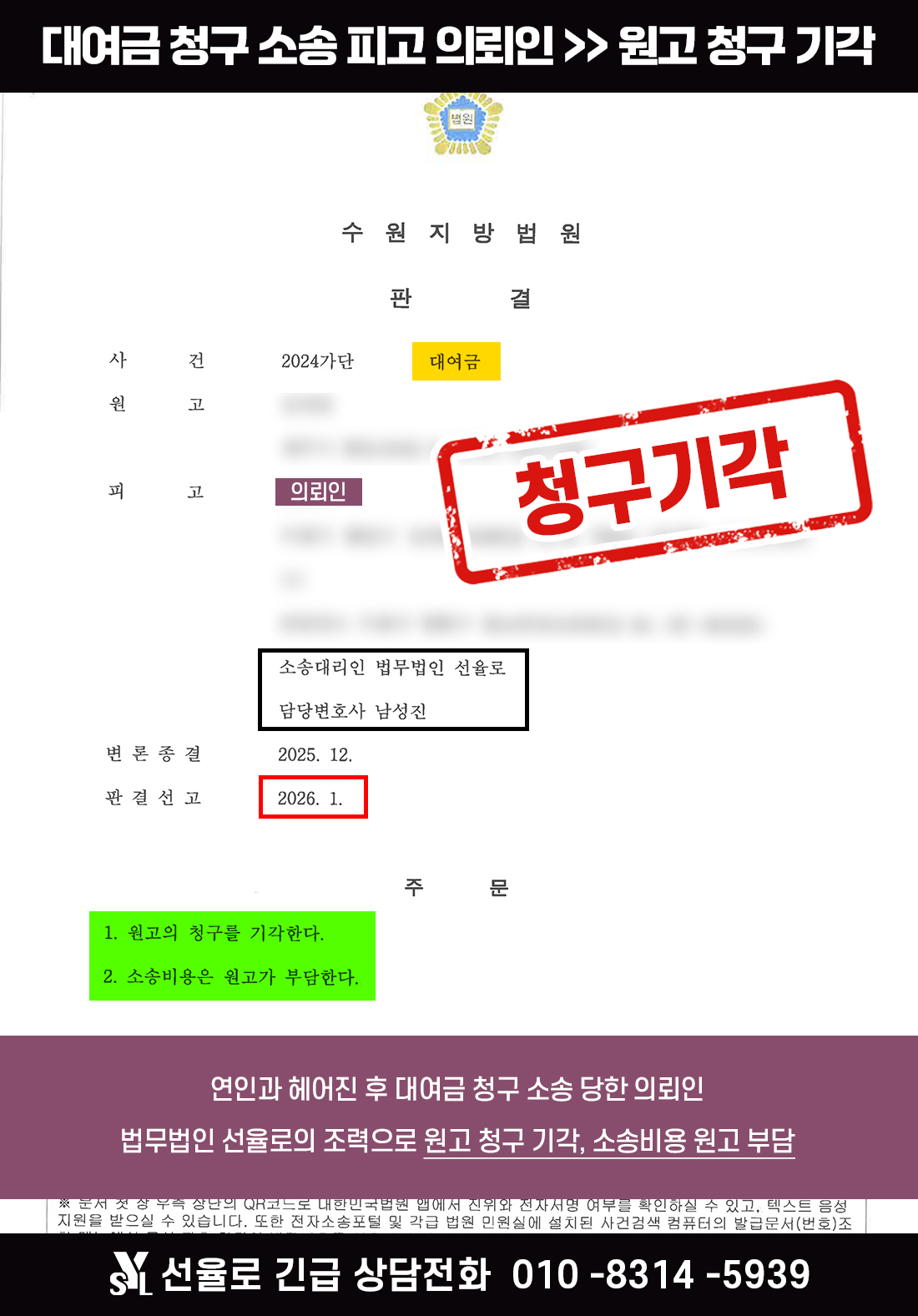 수원대여금청구변호사 | 연인과 헤어진 후 대여금 청구 소송 당한 의뢰인 사례 (2026.01)