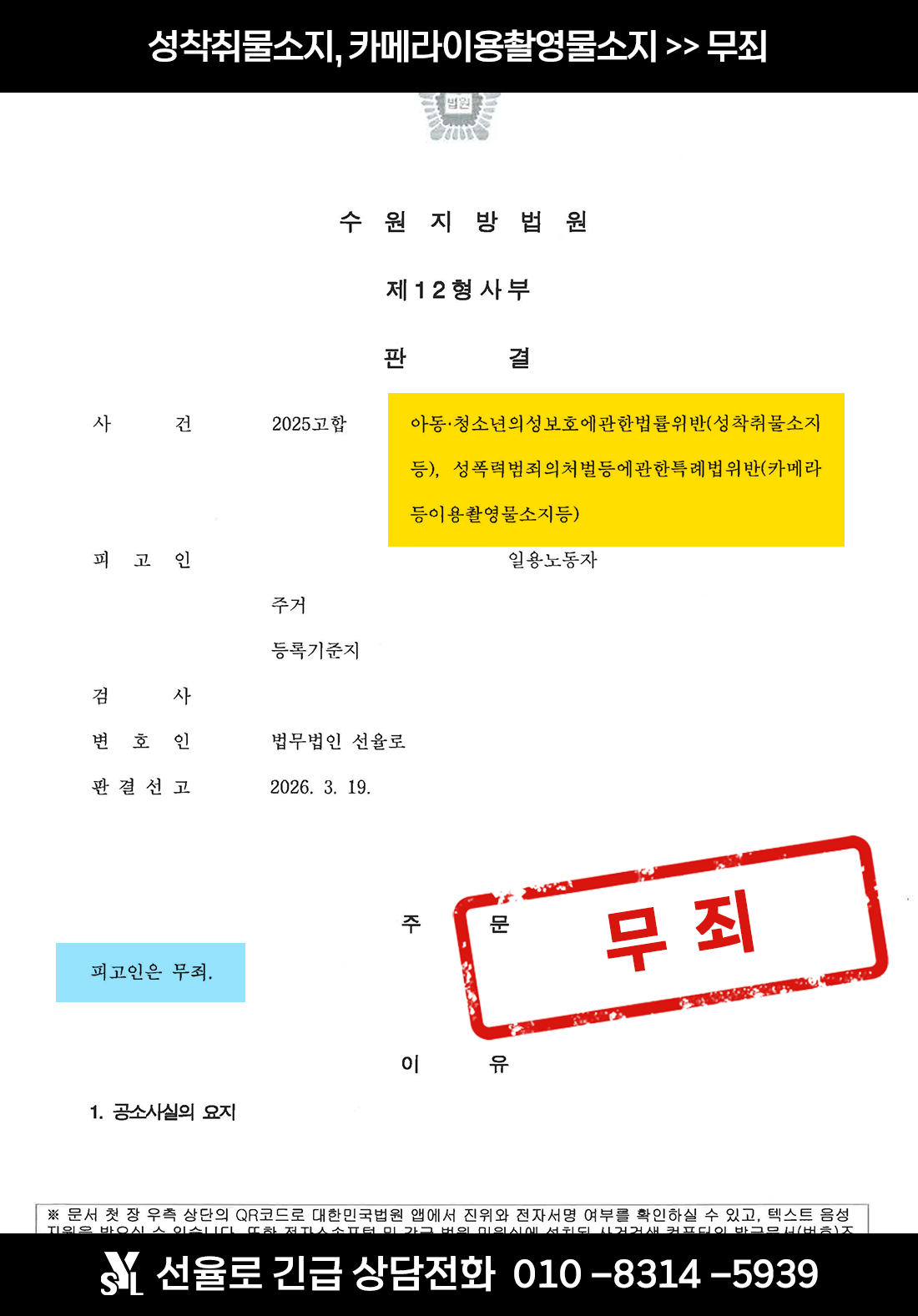 수원아청물소지변호사 | 성착취물 및 카메라이용촬영물소지 혐의 무죄 판결 (2026.03)