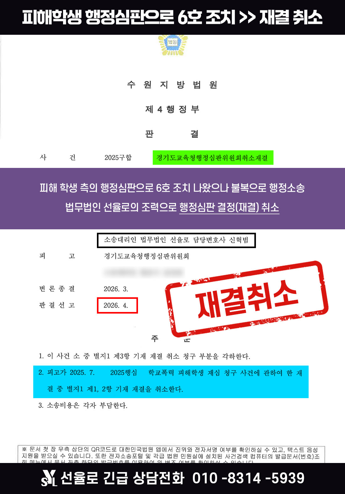 수원학교폭력변호사 | 피해 학생 행정심판 청구로 6호 조치 위기 놓인 사례 (2026.04)